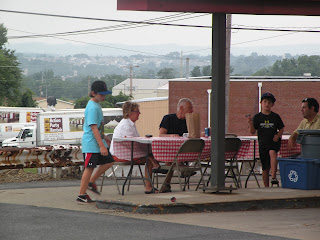 tables, sweetly adorned with checkered tablecloths) and view, my favorite moment was 2 guys driving up in a pick-up truck. Rolling down the window, they yell over to the food truck, "You guys got ribs?," hand-gestures matched his desired full-rack order. She exclaimed "yes," they parked, and received their casual, affordable and quality rack of ribs dinner! A loaded menu will please the entire family and provide us Northerners with a solid taste of the southern BBQ cuisine.